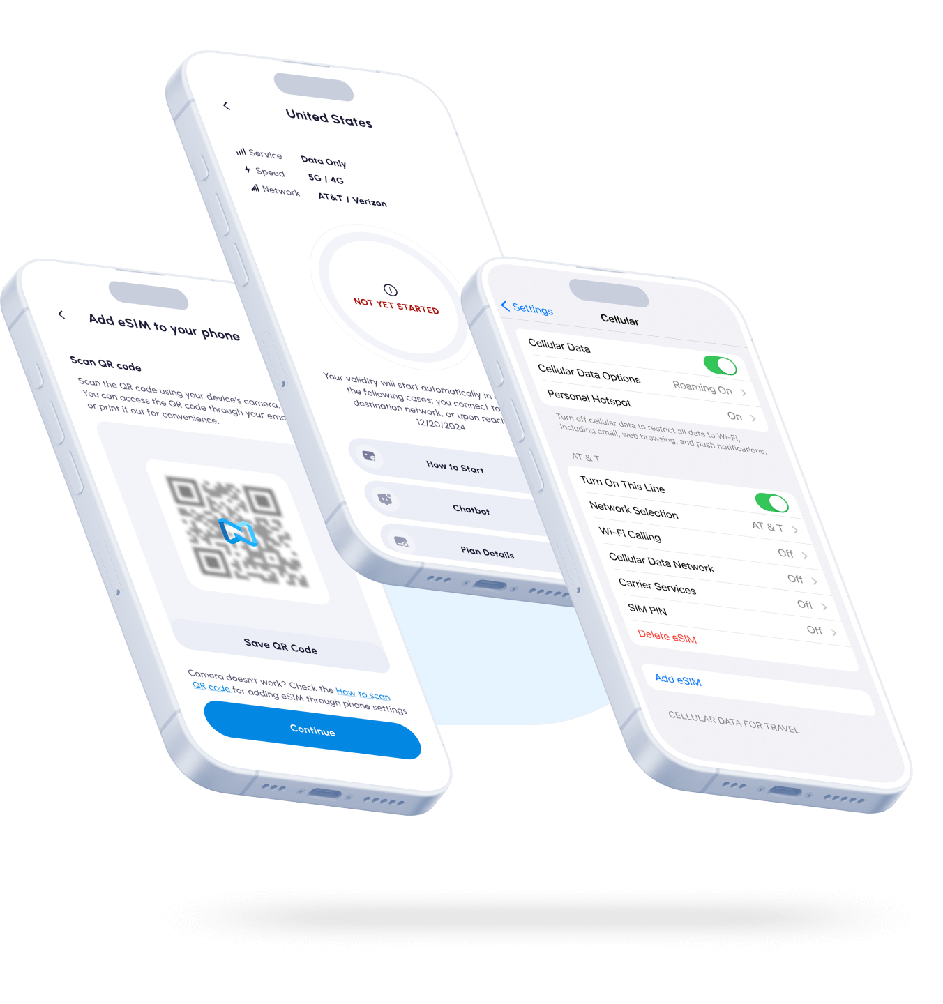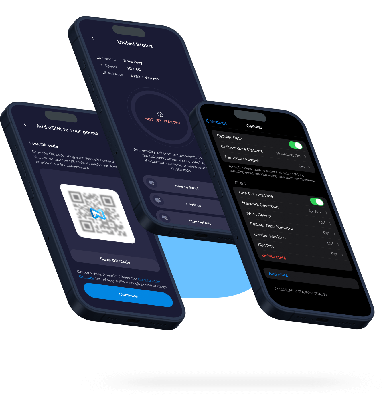 Scan the QR code that is provided to install your eSIM. You will need internet connection to install your eSIM. The eSIM is now added to your phone.